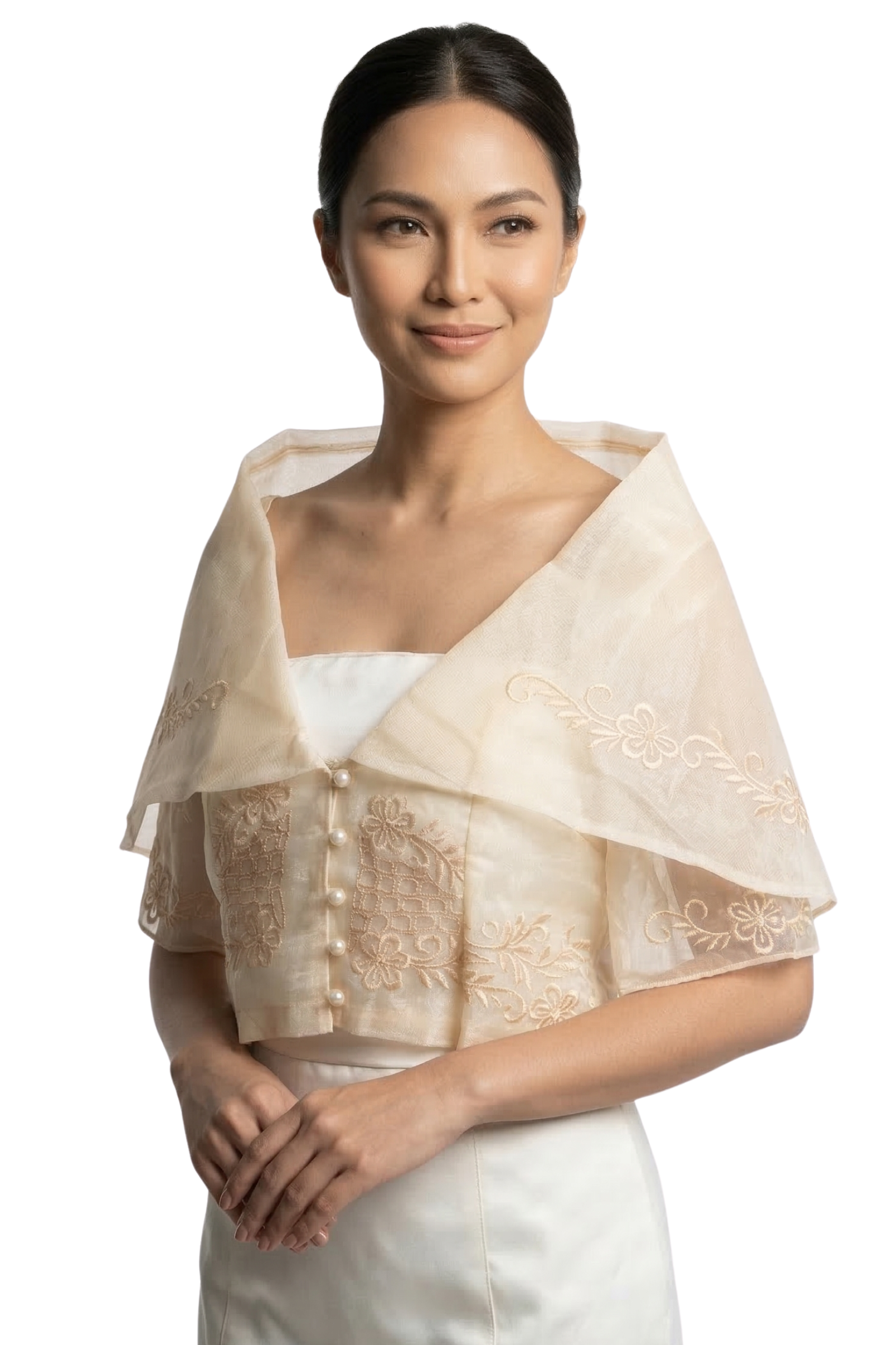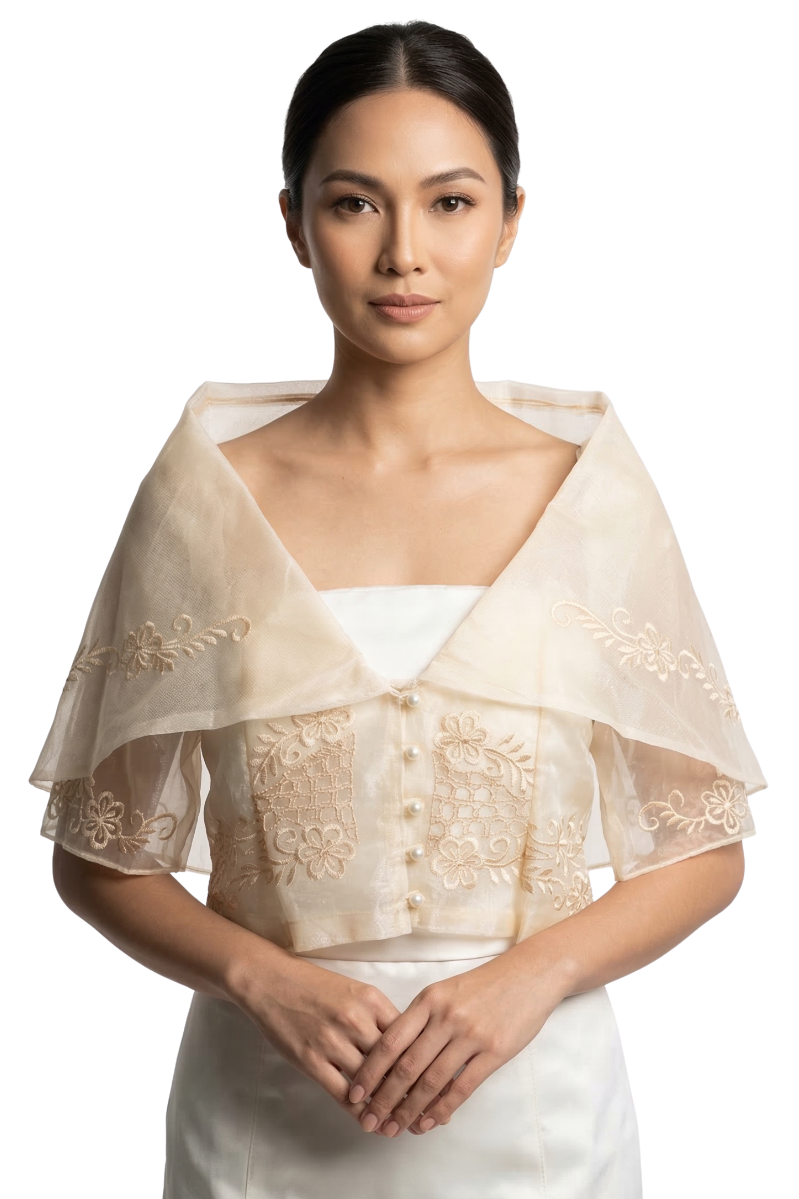 This is an instock product and will be delivered in 4-7 days from the date of order. In-stock and ready to ship, this gorgeous Organza Filipiniana Alampay has sheer, beautifully embroidered fabric, wide butterfly sleeves, and sweet little buttons down the front. It’s a fresh take on a beloved Philippine style and works beautifully for weddings, cultural celebrations, or any formal event. And while you’re browsing, take a peek at our huge collection of Barong Tagalog options and our adorable Kids Barong so the whole family can celebrate in style.