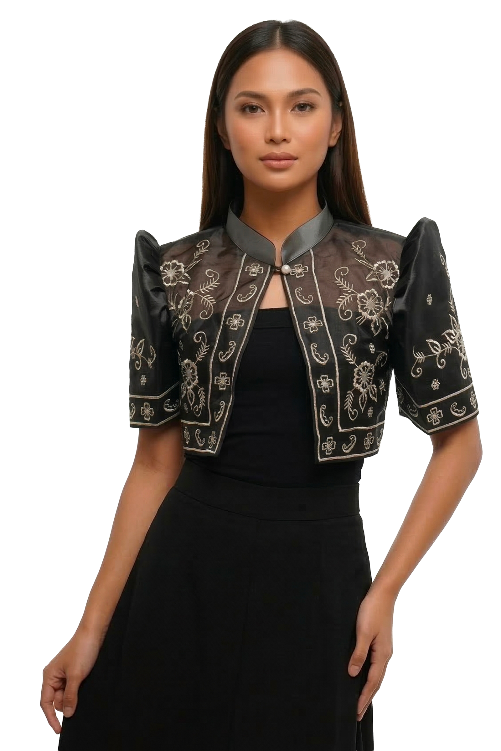 Silk Organza Black Modern Filipiniana Bolero - LJM001