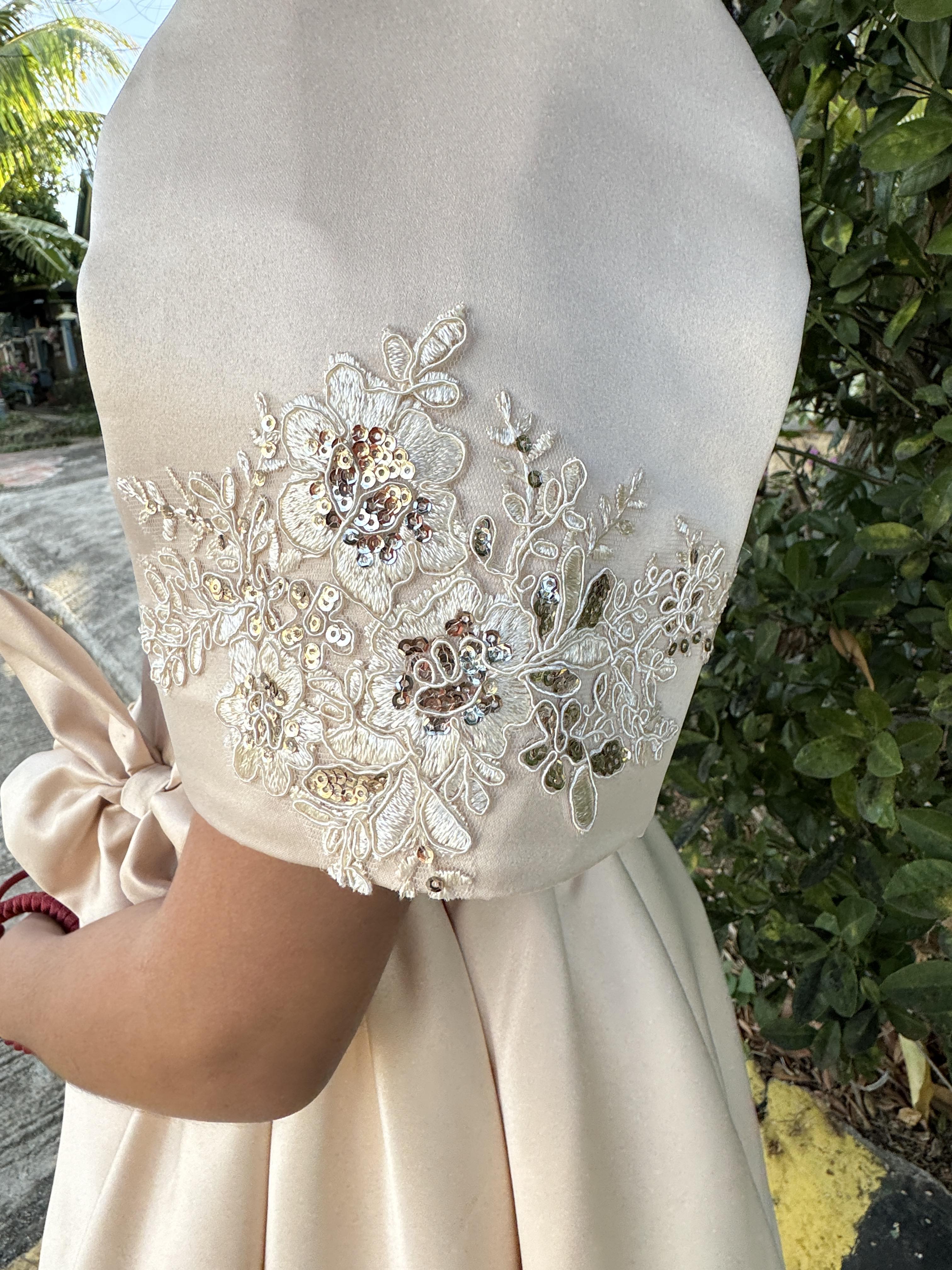 Duchess satin is a luxurious and high-quality satin fabric characterized by its smooth, shiny surface and substantial weight. It is commonly used for formalwear and special occasion dresses, including modern Filipiniana dresses.