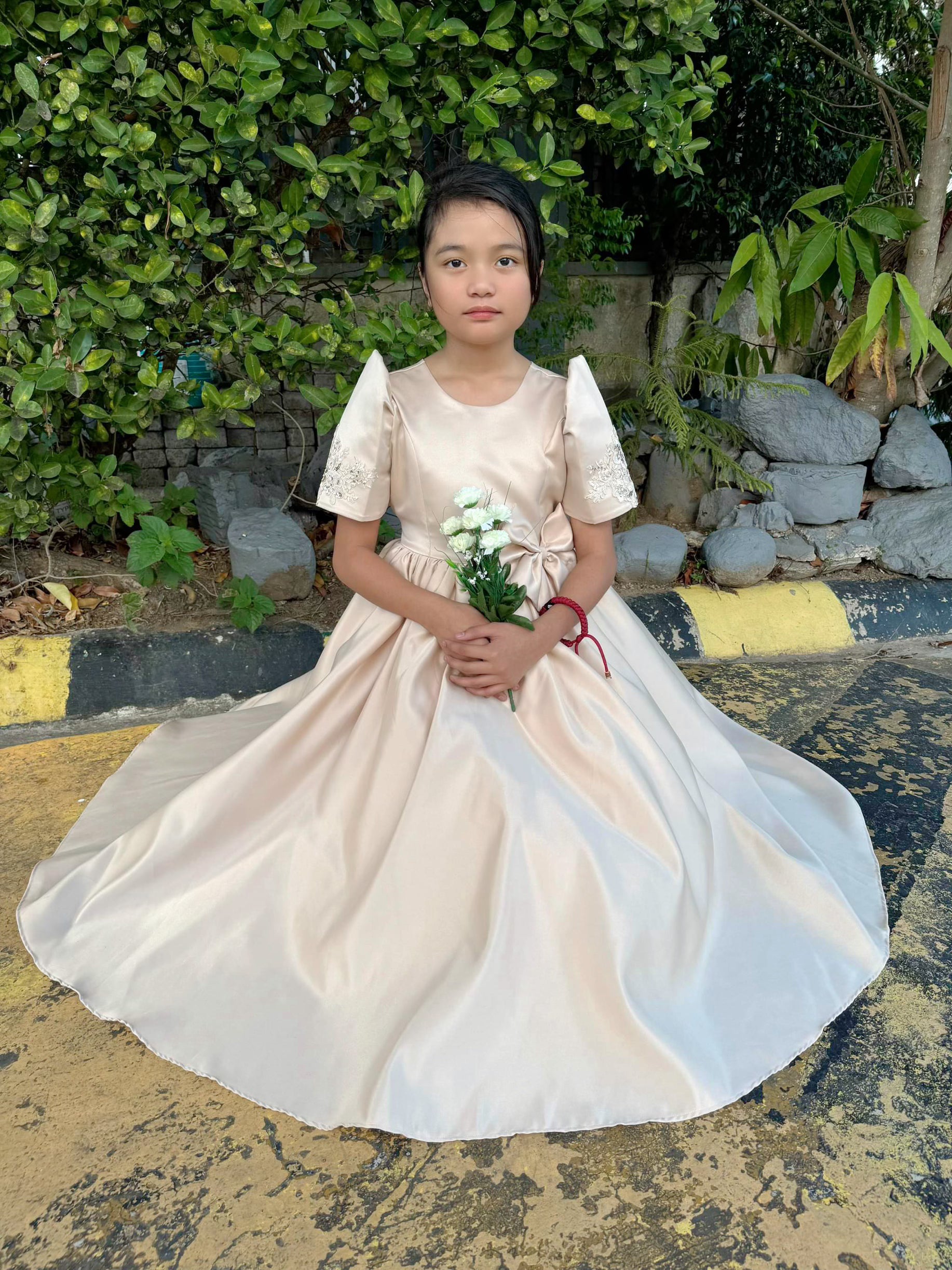 Premium Girls Cream Duchess Filipiniana Dress - Lorelai - JB315