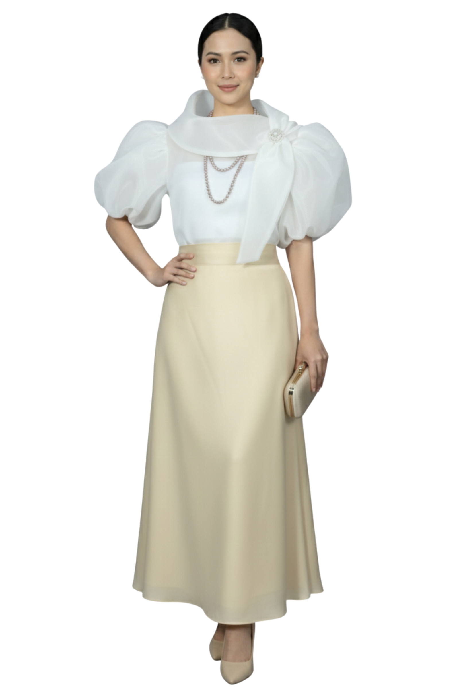 Experience timeless elegance with our Cloud Organza Filipiniana Kimona, a modern take on traditional Filipino fashion. Crafted from delicate organza fabric, this exquisite piece features dramatic puff sleeves, adding volume and sophistication to your ensemble.
