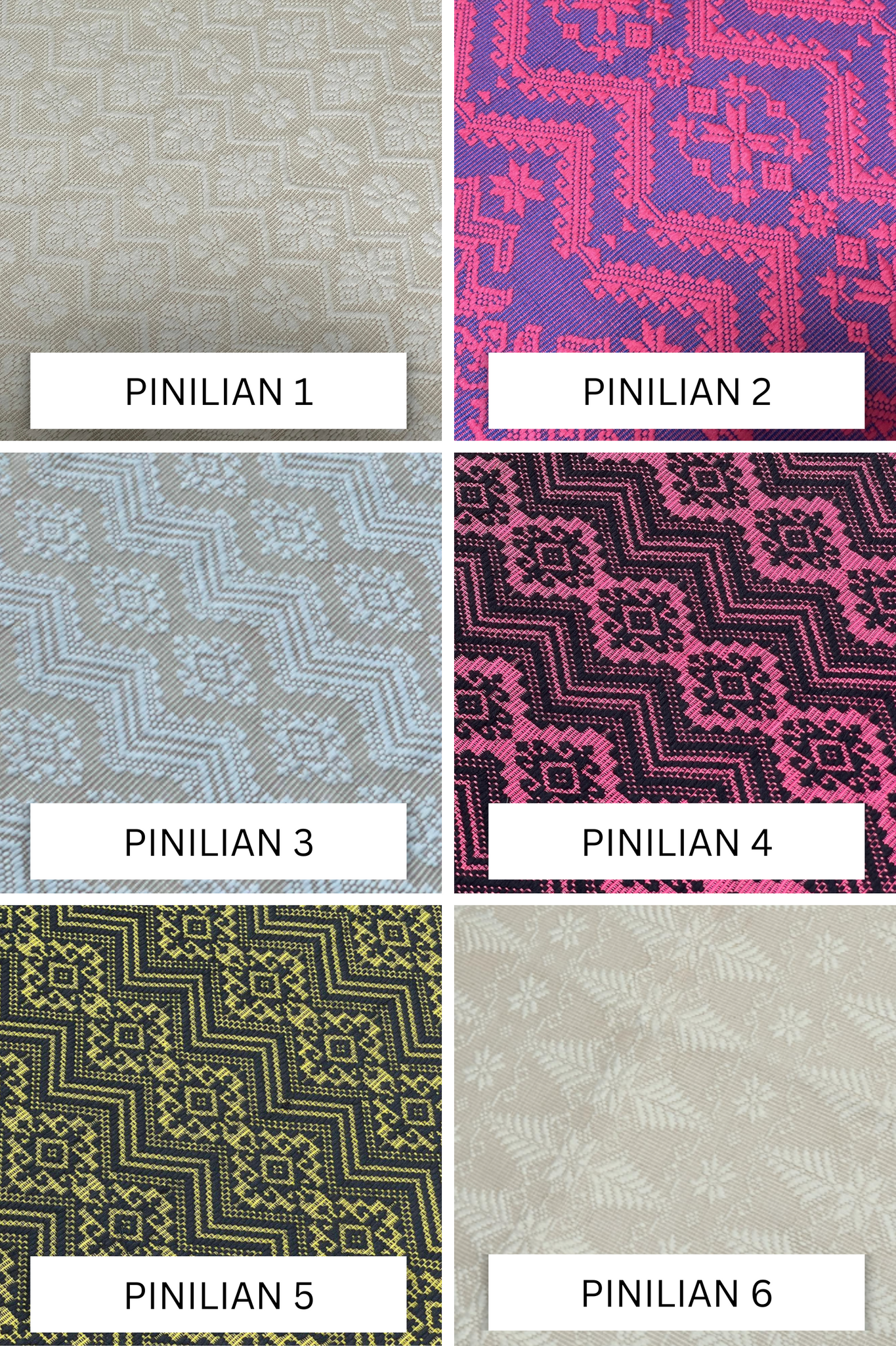 This stunning attire is a Pinilian Filipiniana bolero which has rich traditional and modern flair. Its fabric shows intricate Pinilian weaving, an advanced type of geometric textile art, and floating weft technique of Ilocanos. The bolero features shades of lavender and deep violet that blends into a striking combination of diamonds and symmetrical arrow motifs.