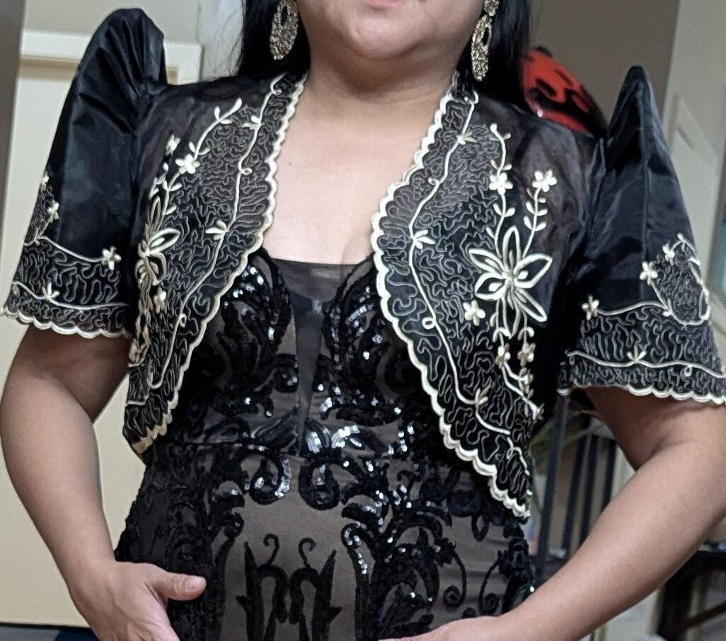 This is an instock product and will be delivered in 4-7 days from the date of order. This black organza Filipiniana bolero is in stock and ships fast, adding classic charm in moments. The embroidered sheer fabric, scalloped edges, and famous butterfly sleeves create the essential wow every outfit deserves. Perfect for formal happenings like weddings or vibrant cultural festivals, it serves as the perfect finishing layer. For family coordination, check out our wide range of elegant Barong Tagalog options, plus the cutest Kids Barong styles for tiny trendsetters.