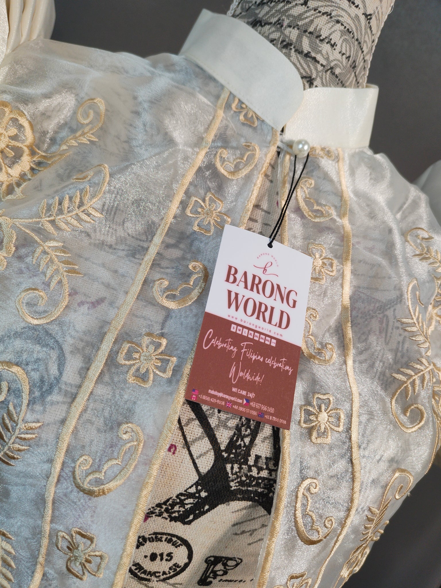 This is an instock product and will be delivered in 4-7 days from the date of order. This Ivory Organza Filipiniana Bolero is here, ready to shine, and shipping out fast. The fluttery butterfly sleeves, delicate stitching, and lightweight organza blend together for a soft, magical look. Toss it over any dress to instantly dress it up—you’ll look right at home at weddings, festivals, or any fancy gathering. While you’re browsing, check out our colorful collection of barong tagalog and the sweetest kids’ barongs designed so the whole family can match in style!