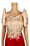 A Modern Filipiniana Dress is a contemporary take on the traditional Filipiniana gown with a length that falls between the knee and the ankle, commonly referred to as a "midi" length. The midi length offers a more modern and versatile option compared to the traditional floor-length gowns.