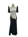 This Black Neoprene Filipiniana Gown is eye-catching with its gold floral embroidery that gently curves across the bodice and butterflies that the sleeves kick out. Soft and structured at the same time, the fabric holds the graceful shape, and a trendy side slit adds a bit of flair without losing the classic feel. Pair that with butterfly sleeves, and you get the best of both worlds—wrapped in elegance and ready for the dance floor. It’s perfect for weddings, black-tie dinners, and any fiesta where showing a bit of culture is a must.While you’re still browsing, don’t miss our rack of matching Barong Tagalog for the guys and our cutest pint-sized Barong for Kids.